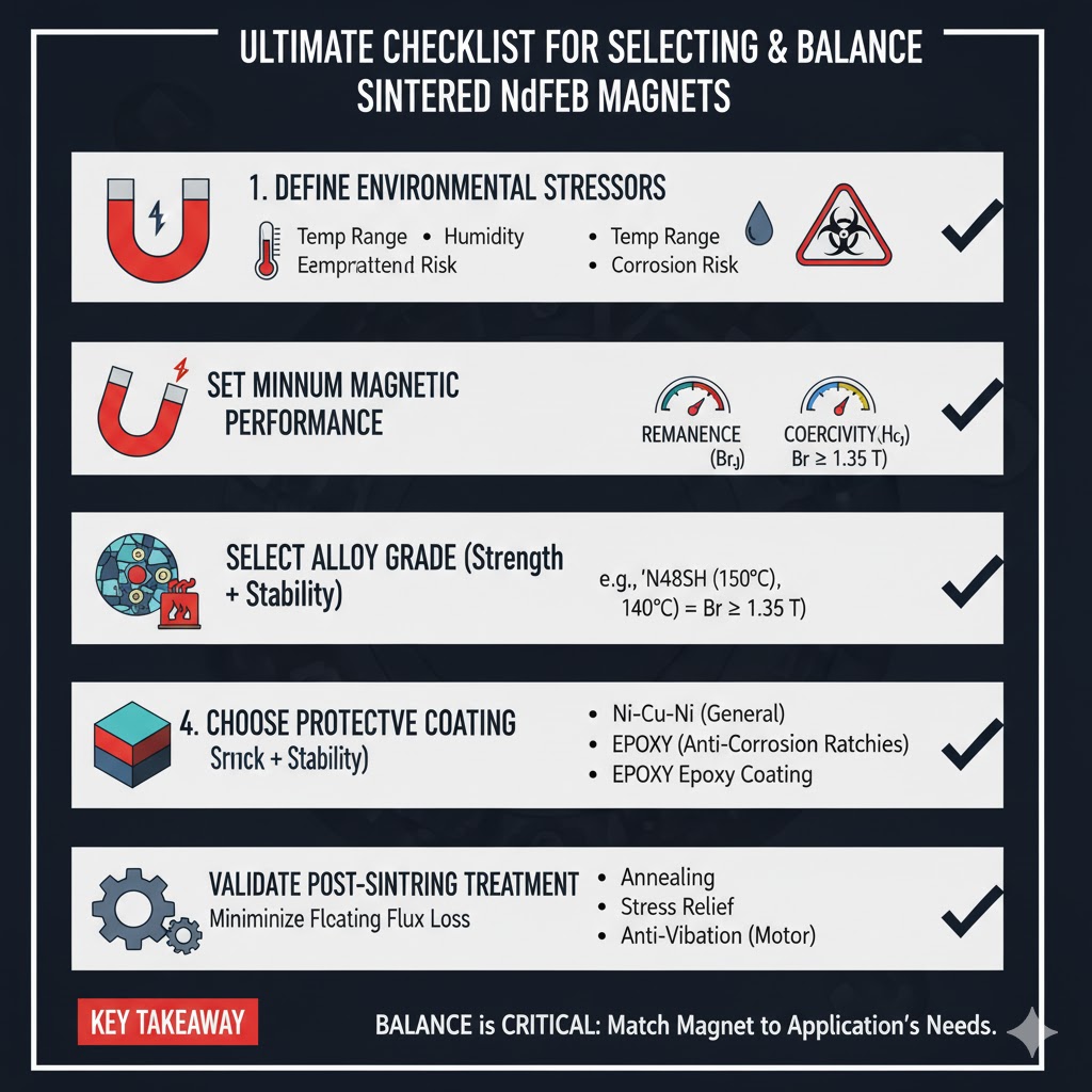 Para garantir que o ímã equilibre desempenho e estabilidade para o uso pretendido, siga esta lista de verificação de cinco etapas: