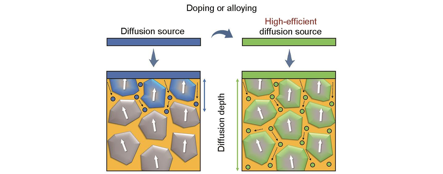 A aplicação desta técnica, que distribui elementos pesados ​​de terras raras com baixo teor ao longo dos contornos de grão, melhora os defeitos nos contornos de grão e alcança um aumento significativo em Hcj.